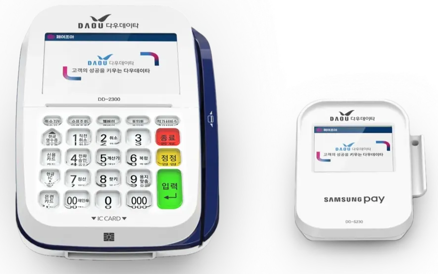 특징: 인터넷 회선이나 전화선을 이용하여 안정적인 결제가 가능합니다. 카운터에 고정해두고 사용하는 가장 일반적인 형태의 단말기입니다.